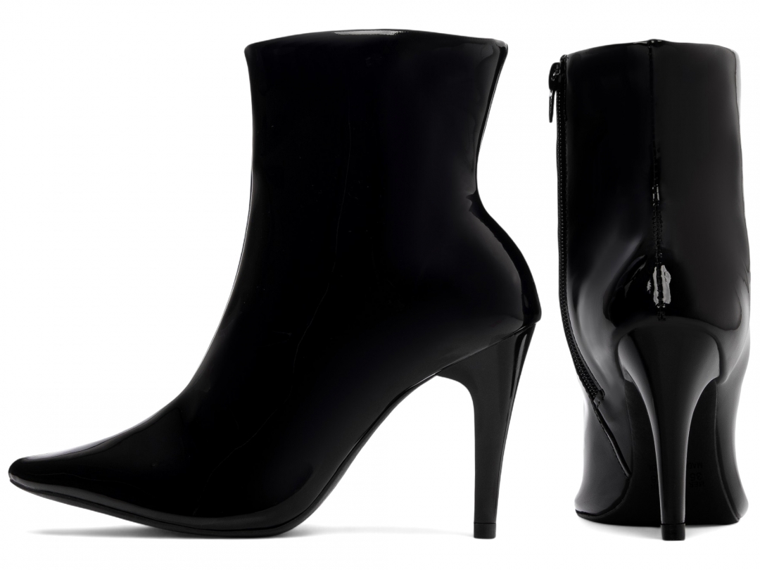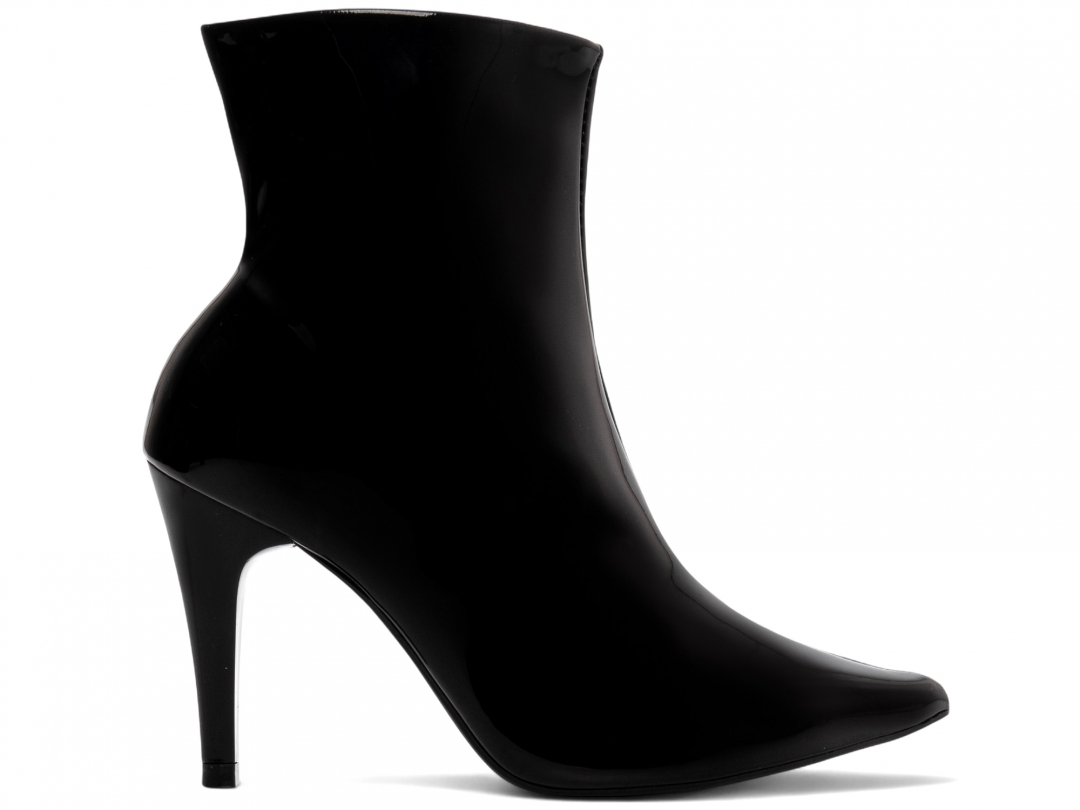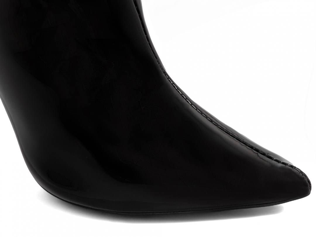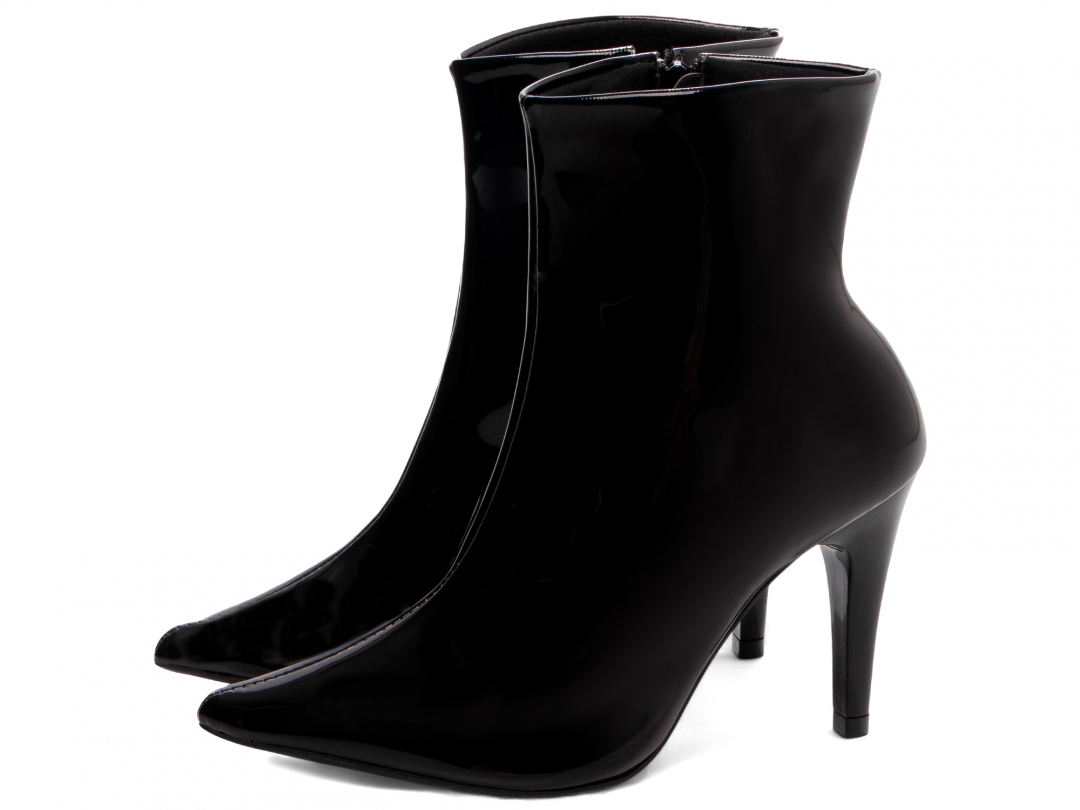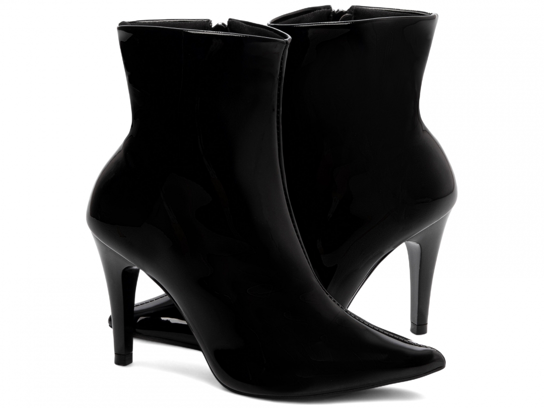 Material: Verniz Preto; Enfeites: Zíper na cor Preto (lateral interna); Palmilha: 8 mm de Espessura, Espuma em EVA, e Taloneira Napa Preto; Forro: Cacharrel, material espumado para maior conforto na cor Preto; Salto: 9 cm de Altura pintado na cor Preto; Solado de PVC na cor Preto.